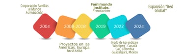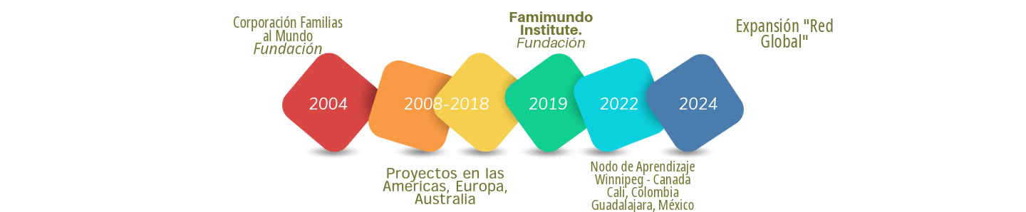 En el año 2004, un grupo de líderes y emprendedores sociales bajo el liderazgo de dos jóvenes profesores universitarios establecen en la ciudad de Santiago de Cali, Colombia, la primera sede, de lo que sería un movimiento de impacto mundial enfocado en la formación de formadores de actores y sujetos dedicados a la atención de niñas, niños, jóvenes y familias, afectadas por la violencia, condiciones de pobreza y/o marginalidad y en su salud mental. Dicha iniciativa en un primer momento se denominaría Corporativo Familias al Mundo, Famimundo.